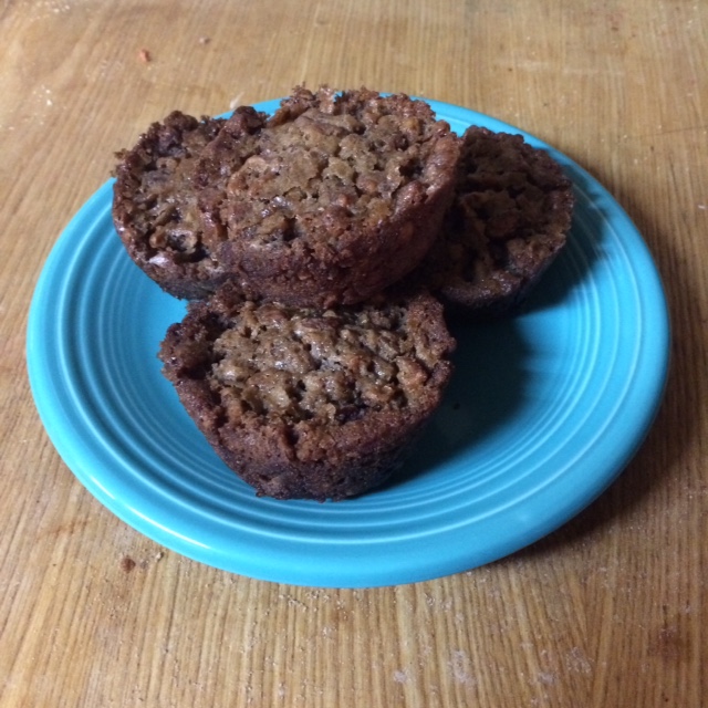 My full-sized muffin pan makes a dozen, and that’s what these measurements made. You can also place a pecan half in the center of each muffin before baking which makes them look pretty. 😉 Now I need to go make another batch of these.