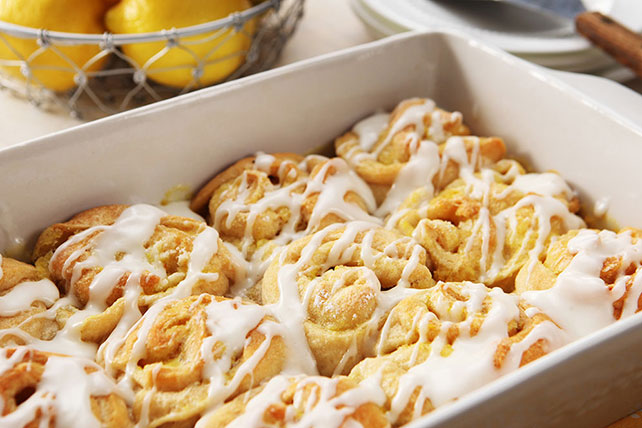 Bake 30 min. or until golden brown. Cool 5 min. Meanwhile, mix cream cheese, lemon juice and remaining sugar until blended.