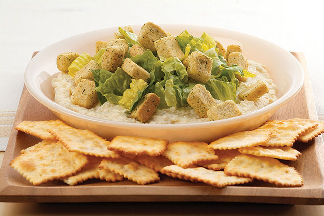 At first glance, it looks like a Caesar salad. But beneath the croutons and romaine is a luscious dip made with cream cheese and Parmesan.