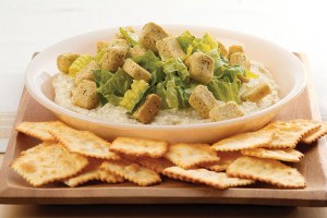 Looking for a summertime dip that might be sort of healthy, but is certainly yummy? I’m a huge fan of Caesar salads so this dip was a must for my recipe files. Plus…easy peasy to fix! From Kraft Recipes: