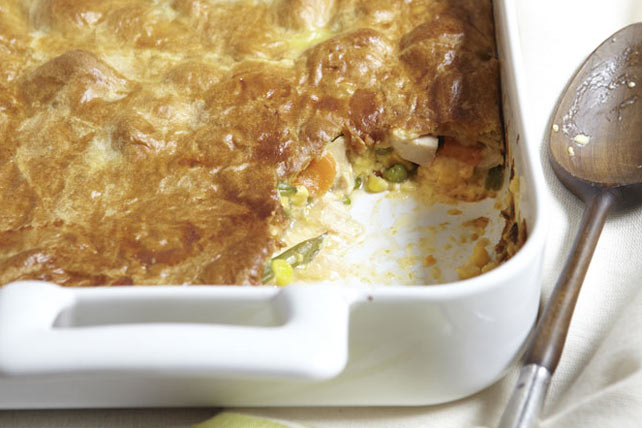 Bring a delicious filling to a delicate crust with this Cheesy Chicken Pot Pie. Our Cheesy Chicken Pot Pie features veggies and chicken in a cheesy sauce.