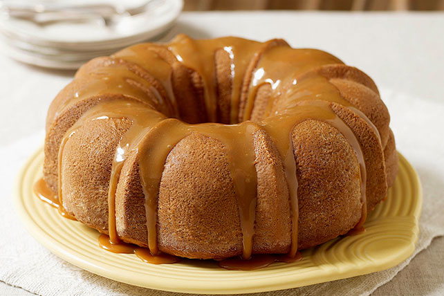 Bake 50 min. to 1 hour or until toothpick inserted near center comes out clean. Cool cake in pan 15 min. Loosen cake from sides of pan; invert onto wire rack. Gently remove pan. Cool cake completely. Transfer to plate.