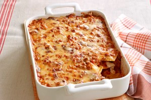 Bake 50 min. or until heated through, uncovering for the last 10 min. Let stand 10 min. before cutting to serve.