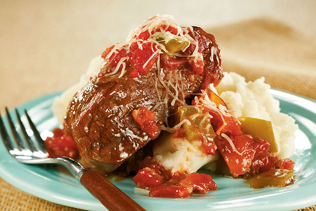 Throw the fixings in the slow cooker in the morning, then enjoy a steak-and-peppers main dish simmering in a tomato-based sauce for dinner.