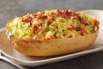 Think twice-baked potato, spaghetti-squash style! Mexican cheese, veggies and tender squash strands form a flavorful filling for a halved squash shell.