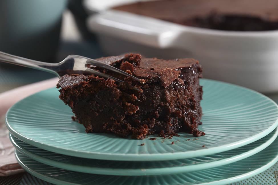 5 – Bake 45 to 50 min. or until toothpick inserted in center comes out with fudgy crumbs. (Cake will be very dense.)