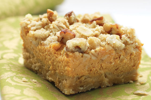Combine a crunchy oat-nut crust, cream cheese in the filling and sweet crumbs for Pumpkin Pie Bars on a new level. Pumpkin Pie Bars are great for potlucks.