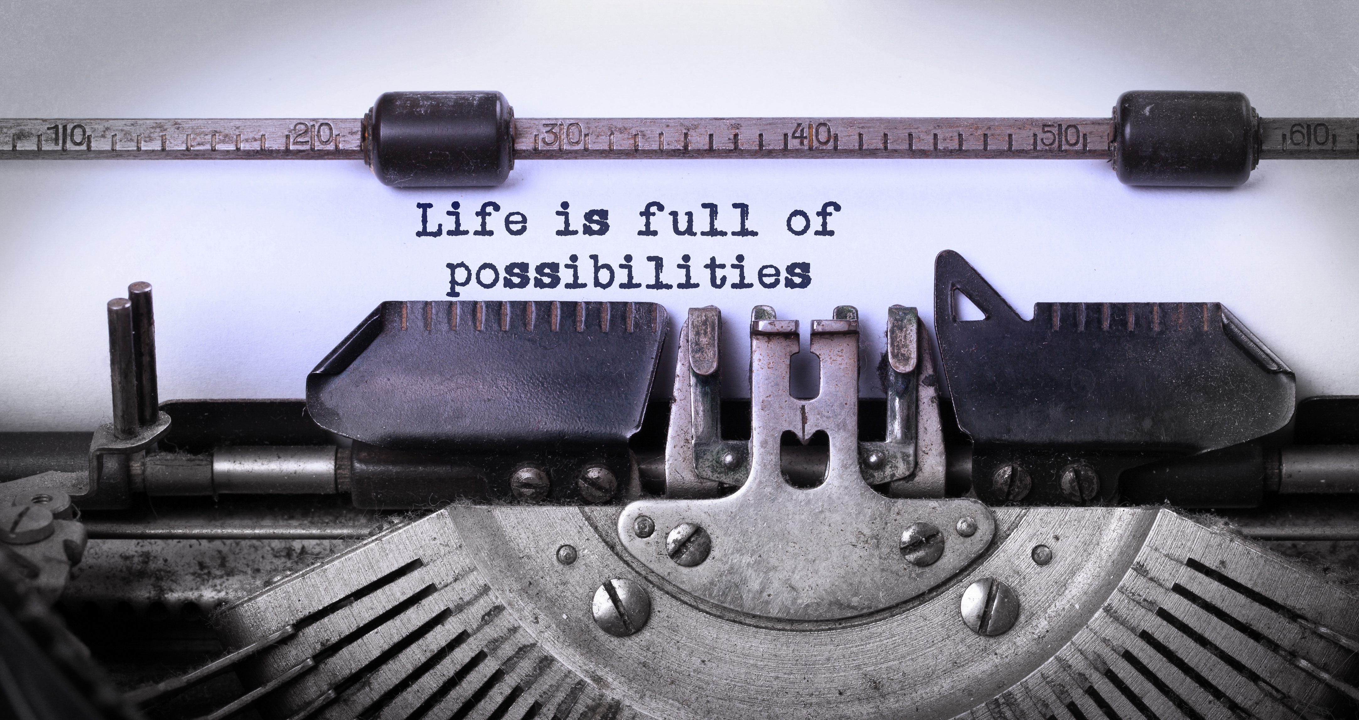 Vintage inscription made by old typewriter, life is full of possibilities
