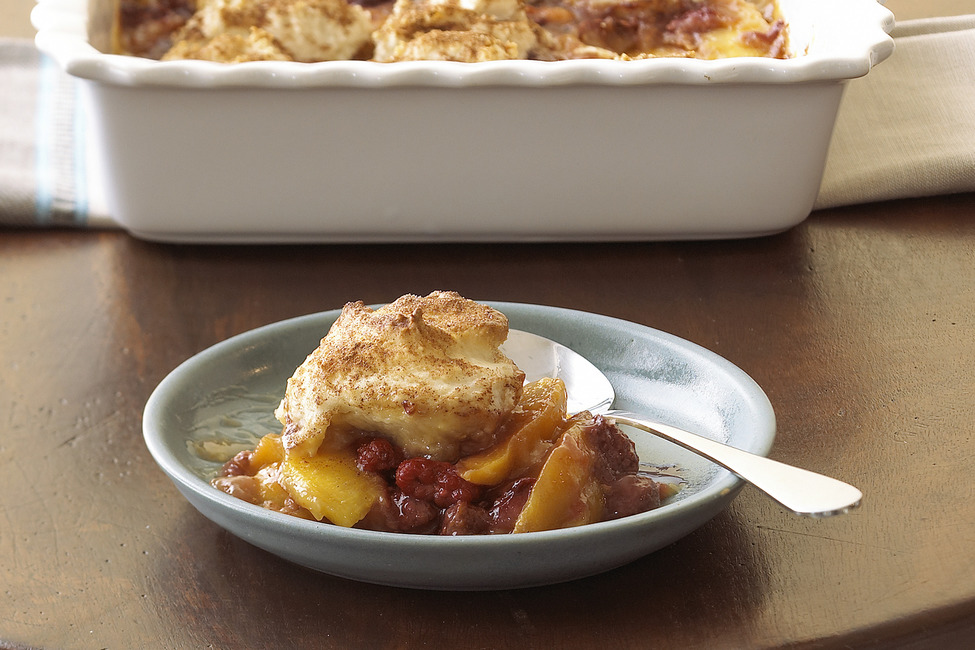 Healthy Living! Taste the secret to our yummy, easy fruit cobbler: vanilla pudding. The fruit in this Easy Fruit Cobbler with Cinnamon is thickened with vanilla pudding.
