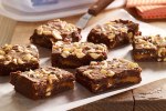 3 – Microwave caramels and milk in microwaveable bowl on HIGH 2-1/2 min., stirring after 1 min. Stir until caramels are completely melted and mixture is well blended; spread over brownie batter in pan. Cover with remaining brownie batter. (Some caramel sauce may peek through.) Sprinkle with remaining nuts.