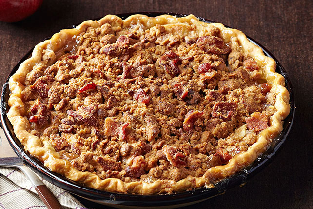 Get creative with our Bacon-Bourbon Apple Pie recipe! Crispy bacon streusel tops this fabulous bourbon apple pie, making for a sweet and savory dessert.