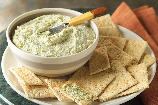 1 – Mix all ingredients except crackers in food processor container; cover. Process until well blended.
