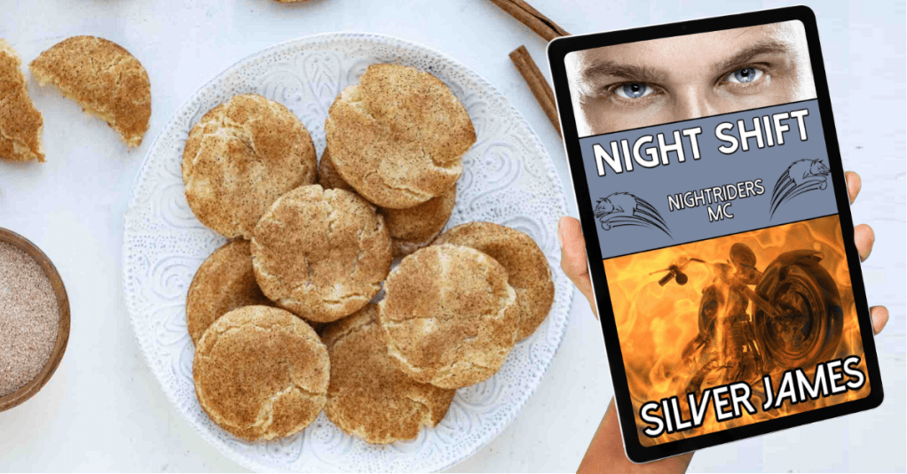 True story. Only called last week and asked me to bake these cookies for the dessert table of Stormy’s school auction. I found what was labled as a candy jar in the party supplies at Wallyworld for pretty cheap and grabbed some fall-themed wired ribbon when I went to buy the ingredients. I had great plans to take a picture to use today and then…life happened. I barely got the things out of the oven and cooled enough to pack in time for Baseball Boy to pick up on his way home. In bragging rights news, the dozen cookies I packed in the jar went for $60. So yeah, I’ll be baking them again next year. LOL In character news, I can see Jonah getting ready for bed and remembering that he needs cookies for school the next day. He goes running to his Aunt Sam because she can do anything! Good thing Easy likes these cookies too because he’d stay up late with Sam while she makes a couple of batches. Don’t tell any of the other Nightriders, but he’ll actually handle the dishes and kitchen clean-up. Of course, he has ulterior motives–he gets to be with his mate and when she’s done, there’s always…bedtime. 😉 If you like your paranormal romance on the dark and dirty side and haven’t tried my Nightriders series, you should. For real. Start with Easy and Sam’s story in NIGHT SHIFT. Just click on the pic or the title to get the Books2Read landing page with all the links. Enjoy the book AND the cookies!