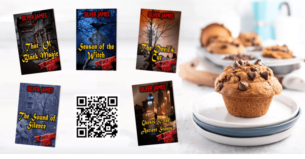 There you go. Made from scratch goodness. I’ll admit I’m tempted to get a chocolate cake mix and follow the muffin recipe on the back to see if there’s any difference in taste. There probably will be because…HOME MADE vs. box! Anyway, if new folks tumble across this, try the recipe, grab the first book, THAT OL’ BLACK MAGIC, to discover FBI Agent Sade Marquis’s obsessions with both flavors. And, of course, Hannah is jealous. *bwahaha* Just use the QR code or click to head over to Books2Read to find all the places you can get all the books in the series.