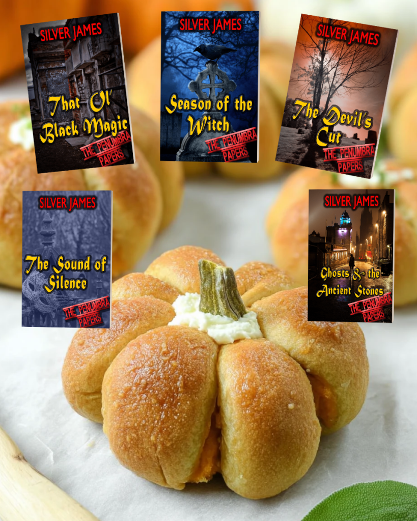 Warning: I have not made these but they looked cute and sound tasty for any sort of Autumn party, gathering or for Thanksgiving. You know, in case you’re feeling adventurous and creative. They appear a bit time-consuming but I bet they are pretty tasty and they are definitely cute. I have no character stepping up to make these so I’m featuring the entire Penumbra Papers series because…well…they remind me of Fall.