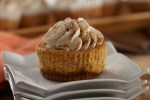 5 – Beat whipping cream with remaining 2 Tbsp. sugar in clean bowl with mixer on high speed until stiff peaks form. Spoon into pastry bag; use to pipe whipped cream over cheesecakes. Sprinkle with remaining pumpkin pie spice.